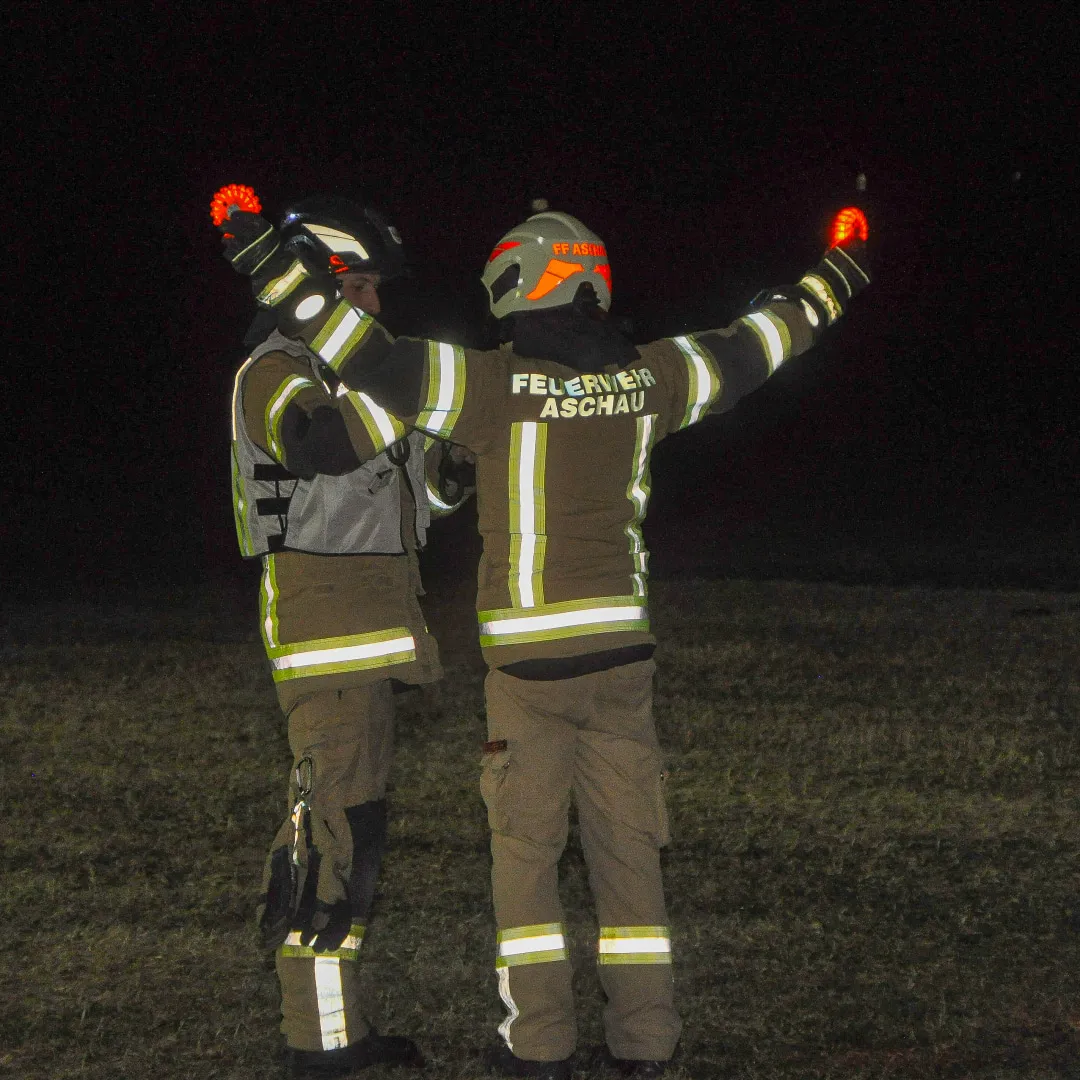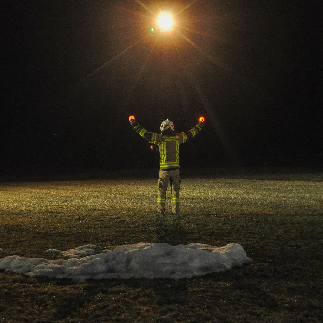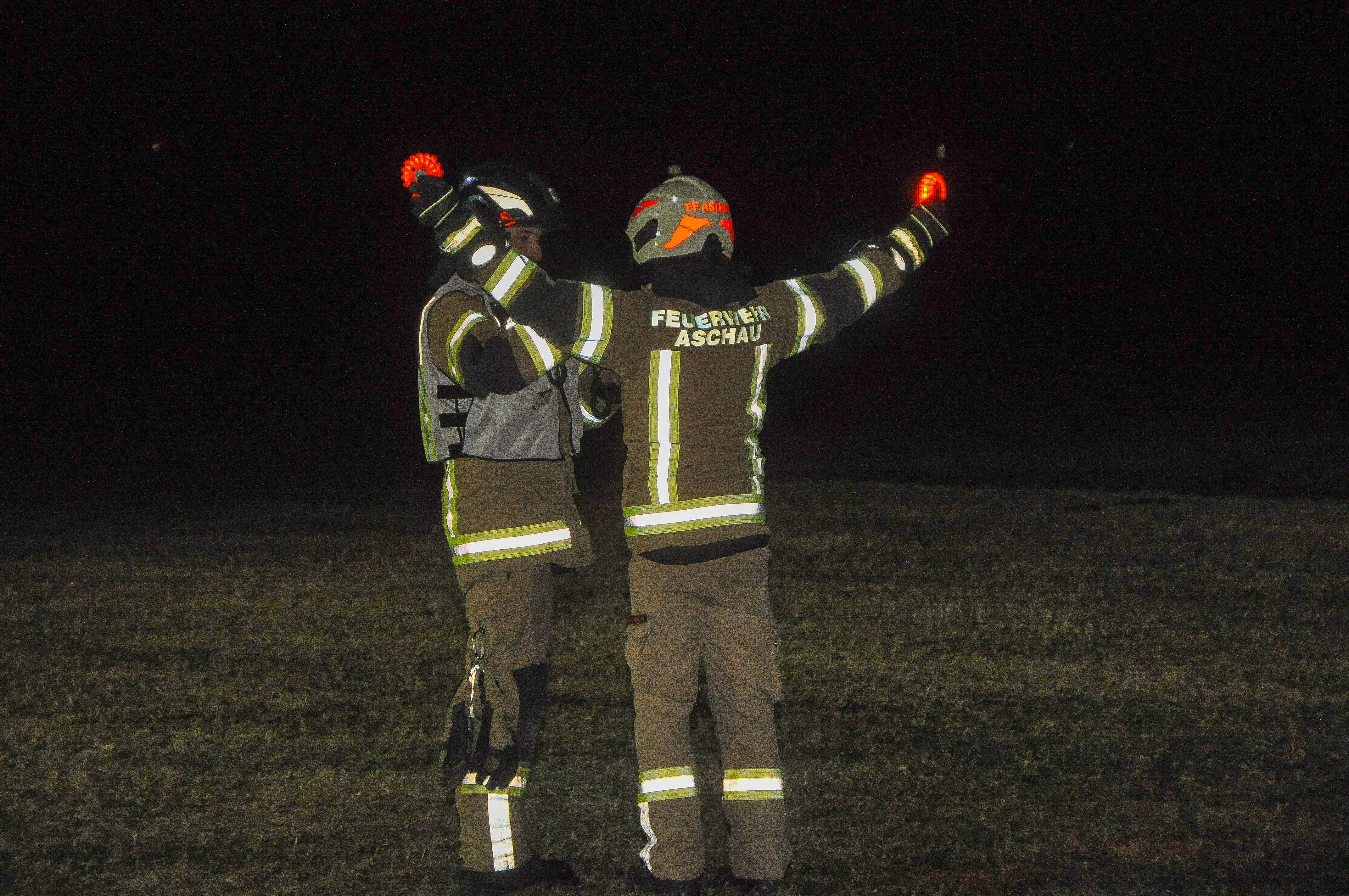 Am Dienstag durfte die Feuerwehr Aschau Teil einer solchen Übung sein. Dabei galt es, einen nachtlandetauglichen Platz auszuleuchten und den Hubschrauber einzuweisen.