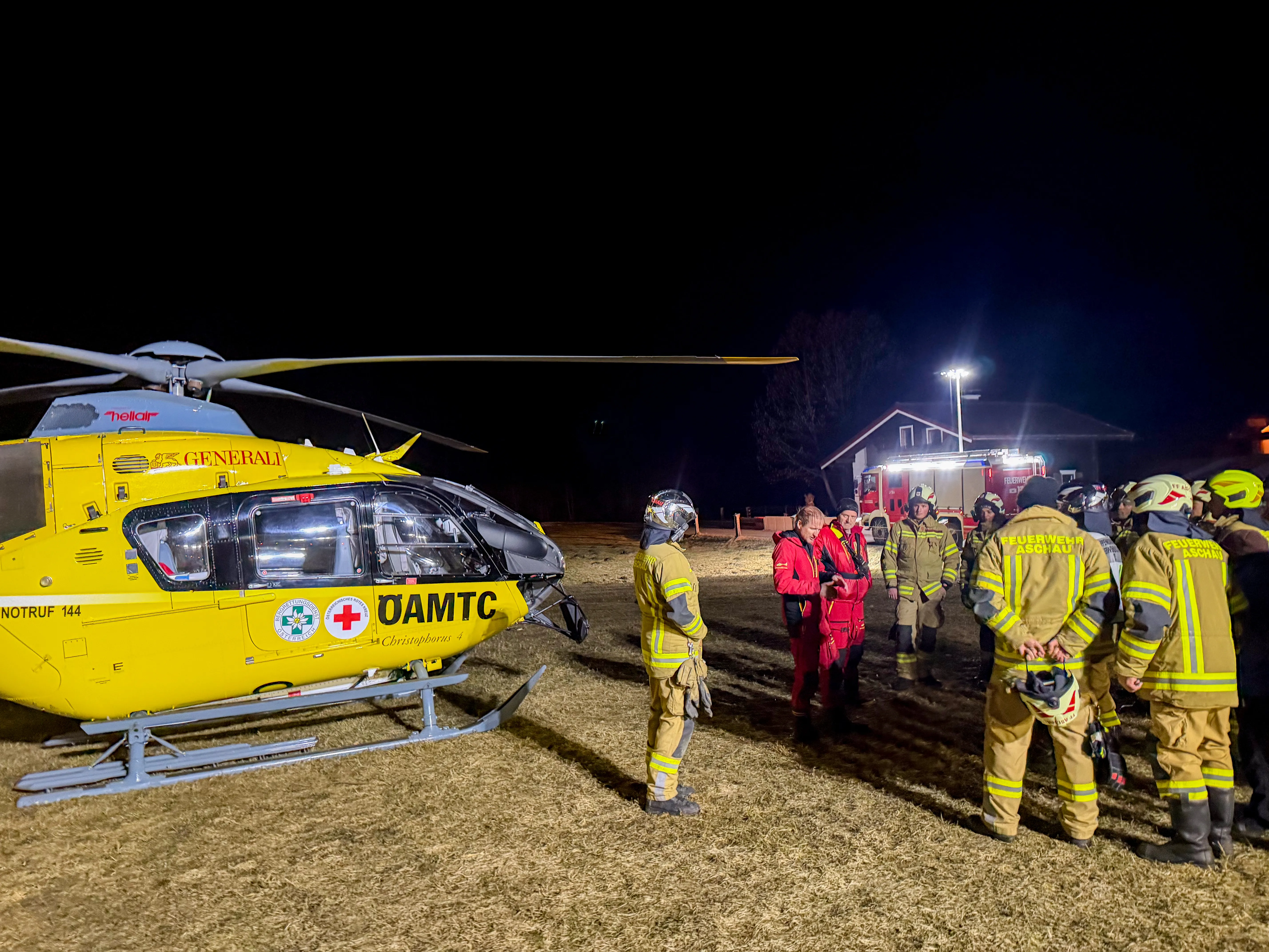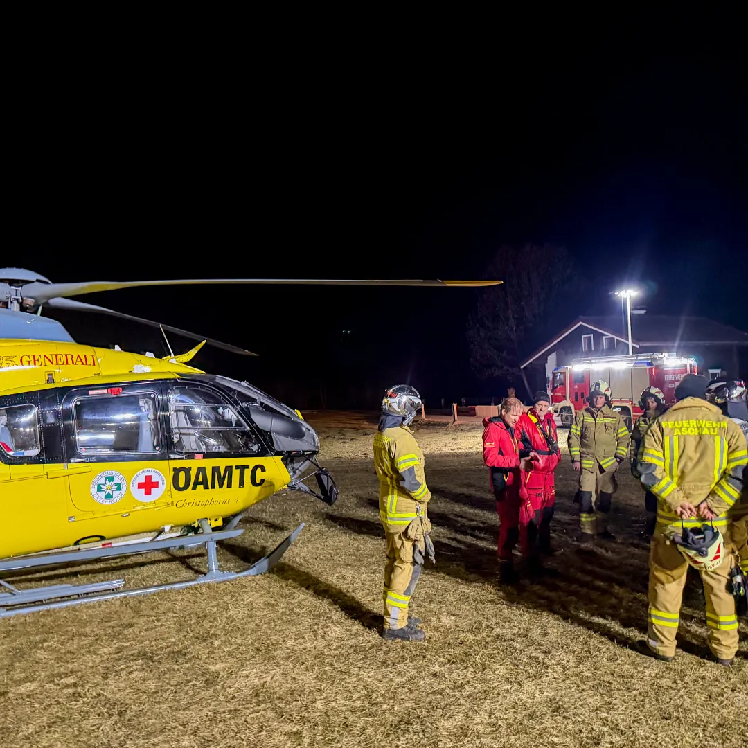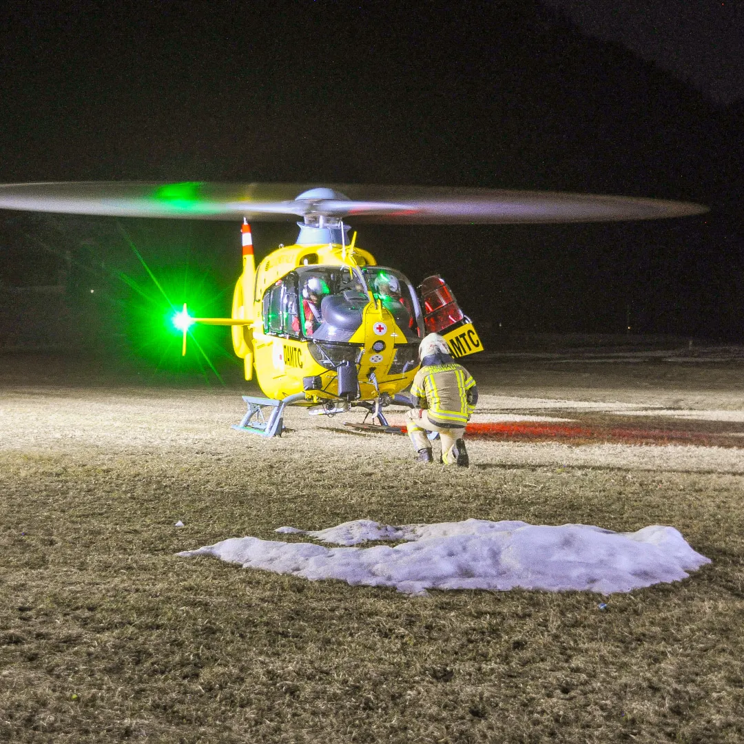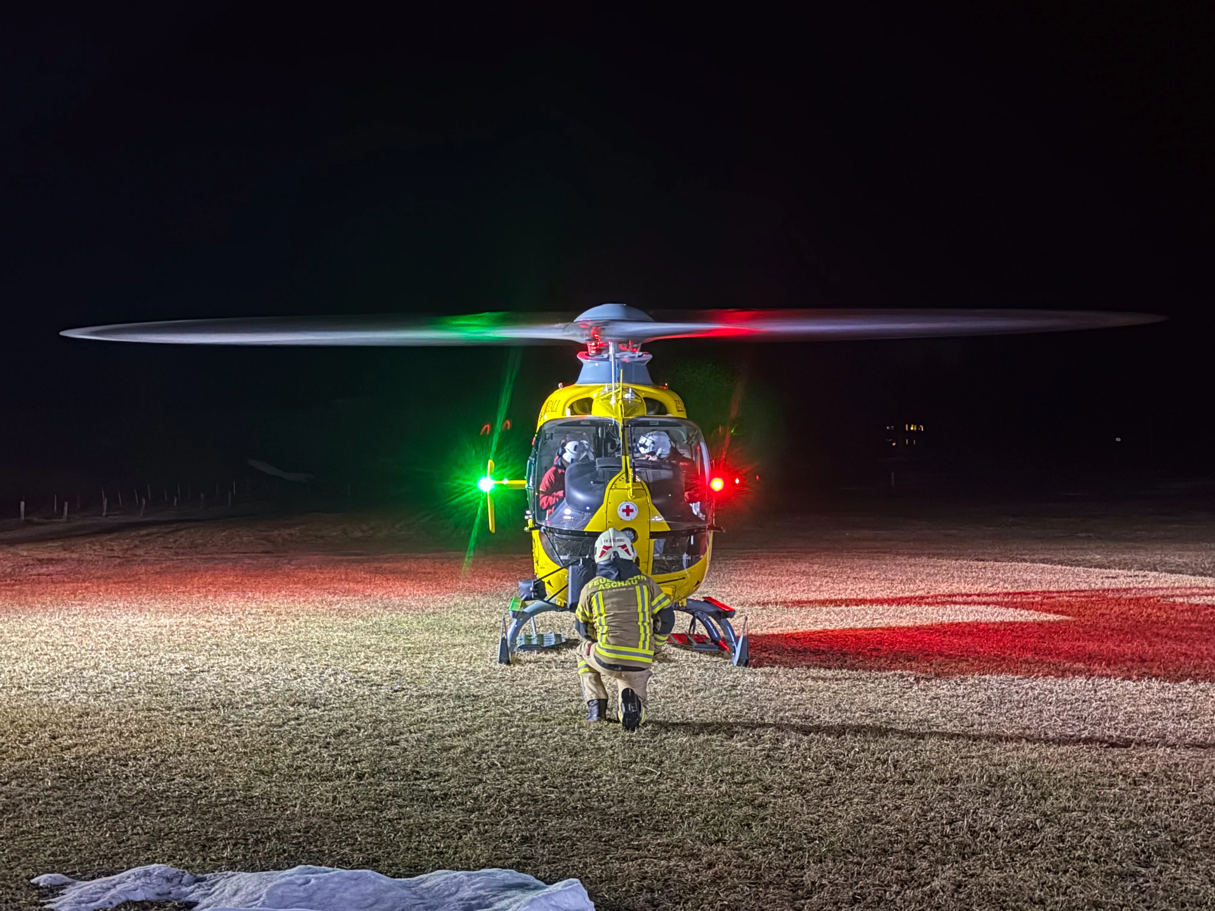 Am Dienstag durfte die Feuerwehr Aschau Teil einer solchen Übung sein. Dabei galt es, einen nachtlandetauglichen Platz auszuleuchten und den Hubschrauber einzuweisen.