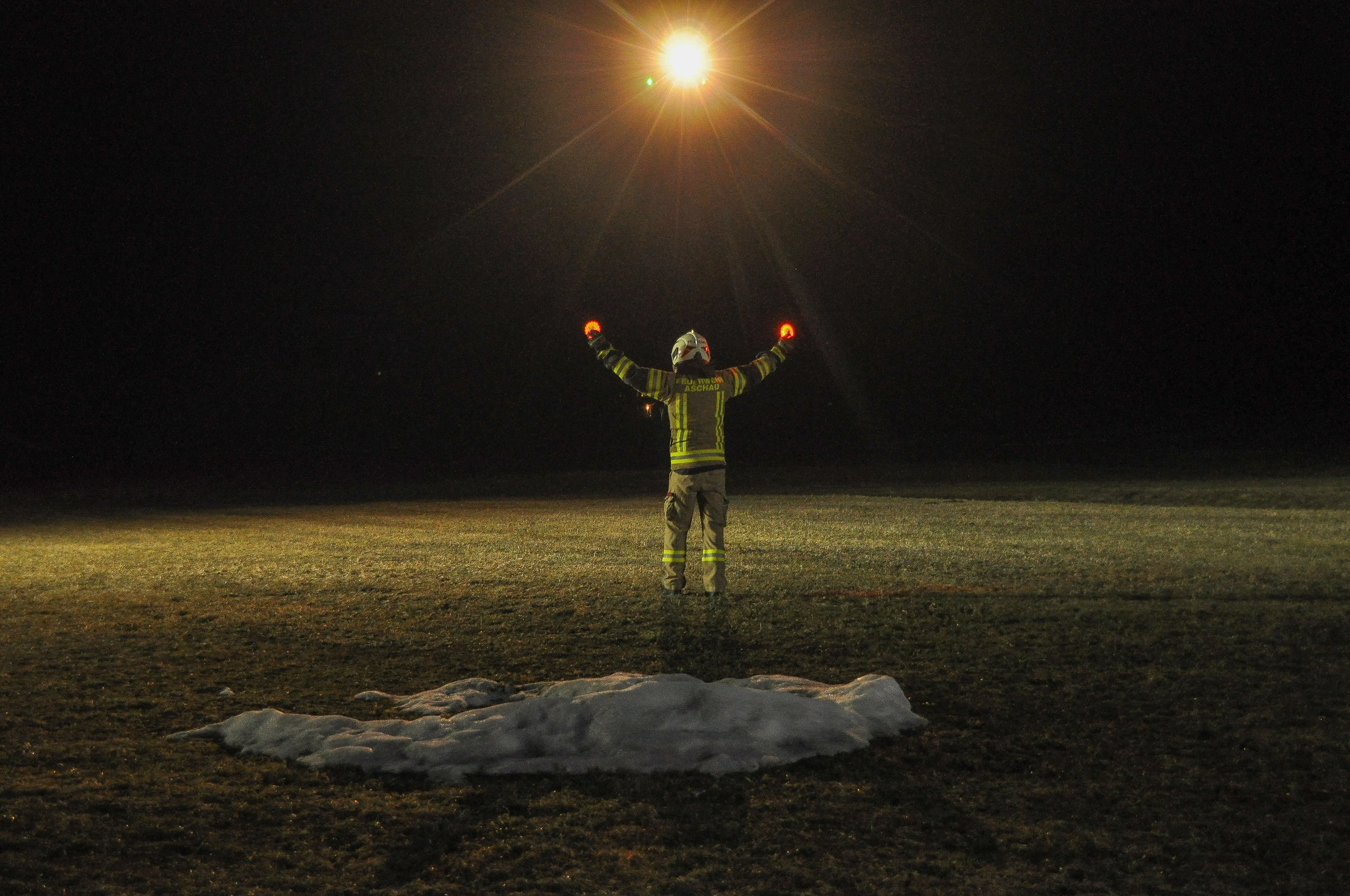 Ebenso wurde das Feld neben dem Feuerwehrhaus auf Nachtlandetauglichkeit getestet.